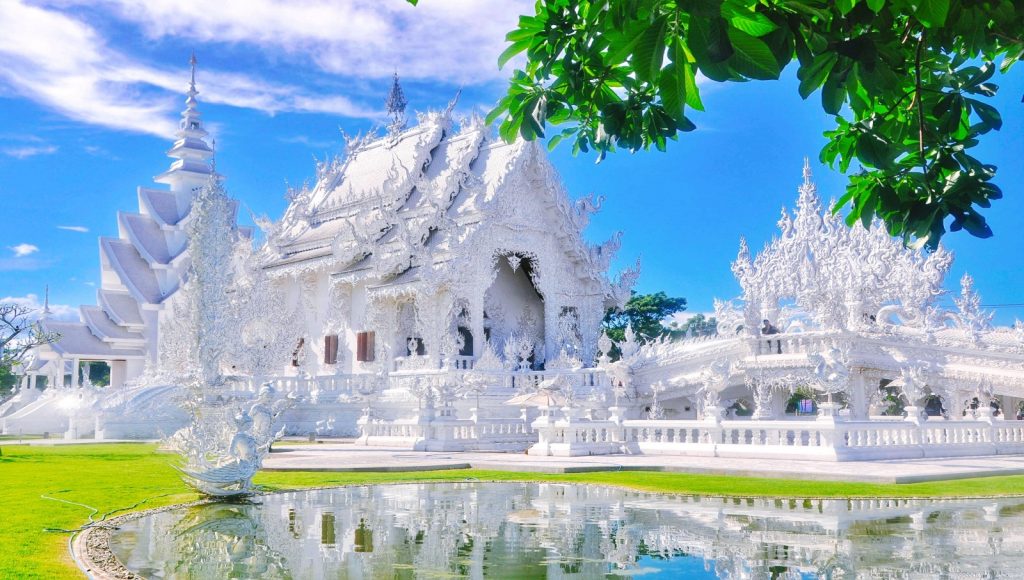 龍坤藝術廟 (白廟) 感受天堂與地獄交融 寺廟的設計風格獨特,整體以白色為主,給人一種清新脫俗的感覺。白色代表著純潔和神聖,讓人們感受到一種心靈的凈化和洗滌。而寺廟上雕刻的無數條龍,則寓意著佛法的威嚴和神聖。這些龍交織在一起,仿佛在訴說著一個古老而神秘的故事。